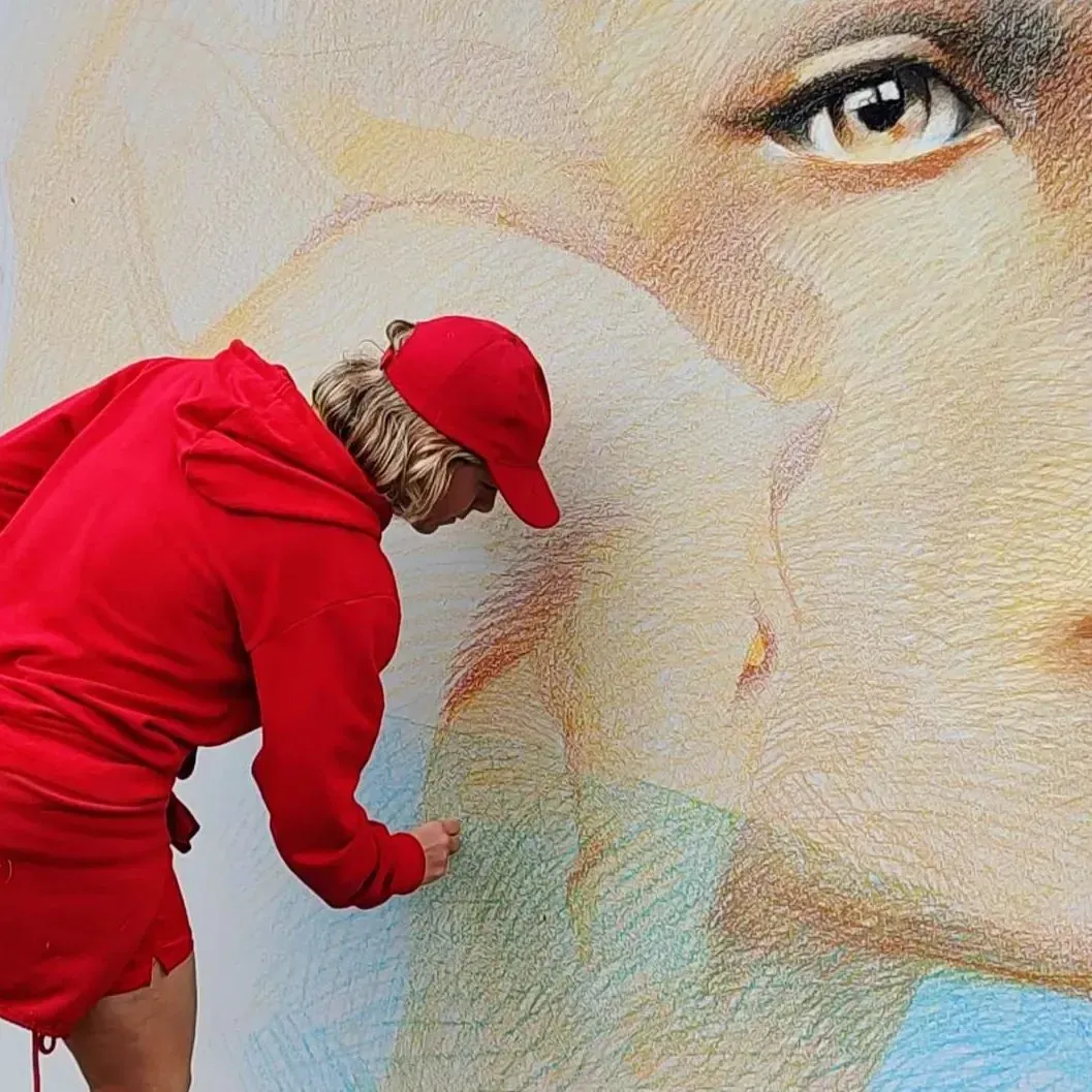 It is through the use of oil pastels directly on the walls that she has developed a unique style, characterized by a fascinating textural rendering, blending material, color, and transparency. This particular technique, which she applies to both canvas and murals, lends her creations a singular sensory dimension.